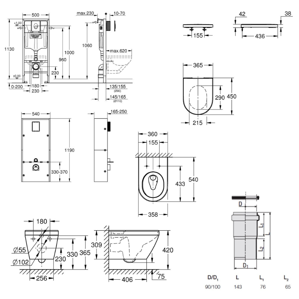 - Grohe Solido+ set 4 en 1 pour WC, hauteur 1,13 m (G36529000)