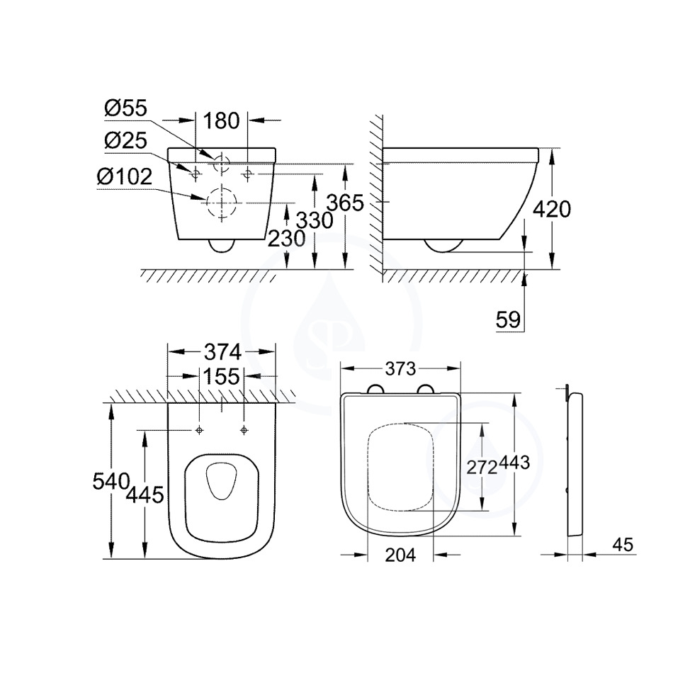- Livré avec tiges et écrous pour fixation de la cuvette WC