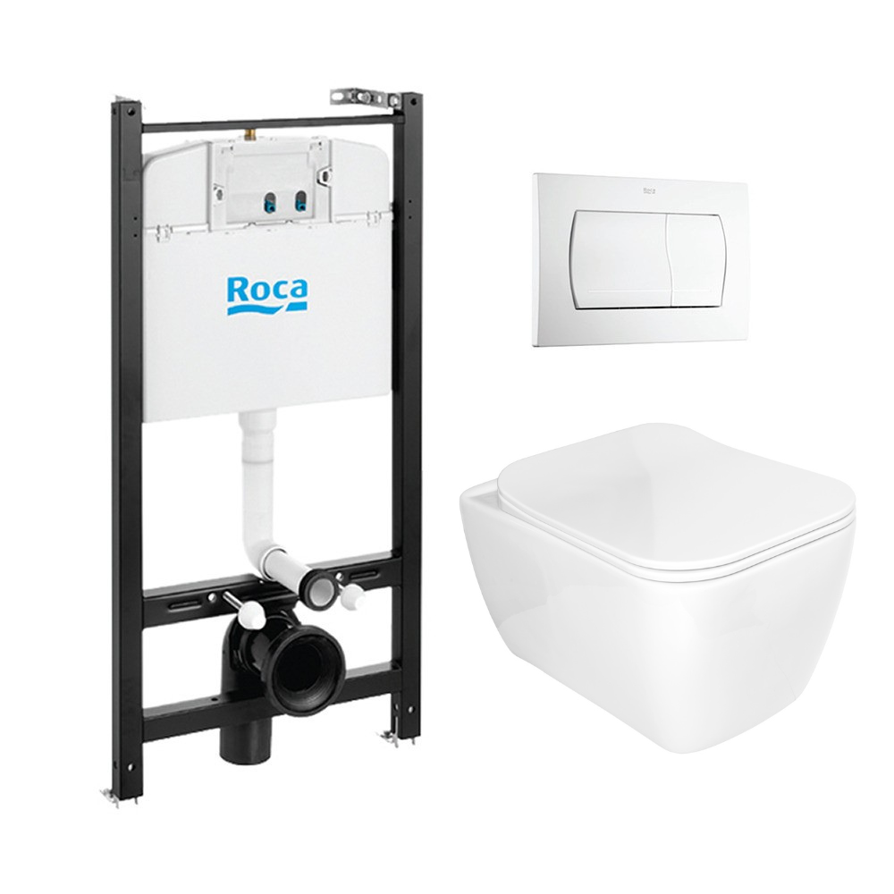 Pack Bâti-support ROCA ACTIVE + WC sans bride Glacera Havana + abattant ultra fin + plaque blanche