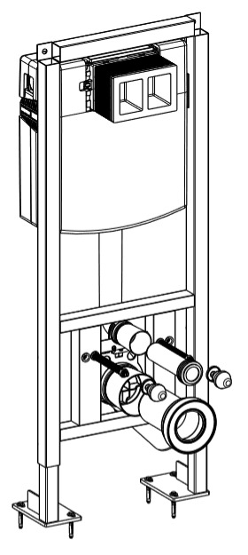 - Avec fixation murale, pieds pour charge lourde et matériel de fixation inclus, avec capuchon de protection pour la conduite d'eau de rinçage, 2 boulons de retenue M12 pour WC, réglables entre 180 et 230 mm avec capuchon de protection et écrous, instruction de montage, sans plaque de déclenchement