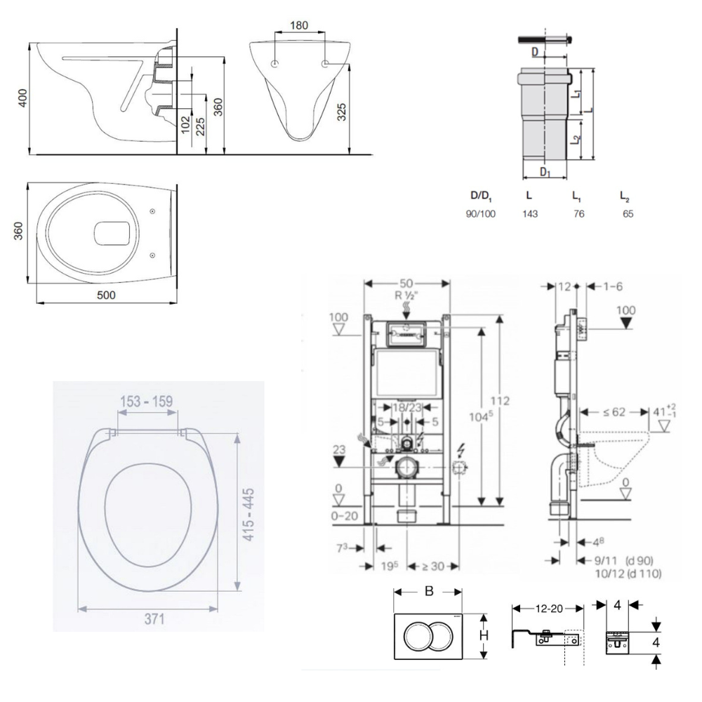 Geberit Delta Pack bâti-support Duofix 112cm + plaque de commande blanche Delta01 + fixations murales (111.154.11.2) :