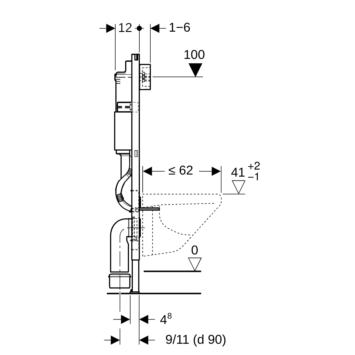 - Pour une utilisation avec des bâti-supports Geberit Duofix pour un meilleur transfert des forces dans le sol