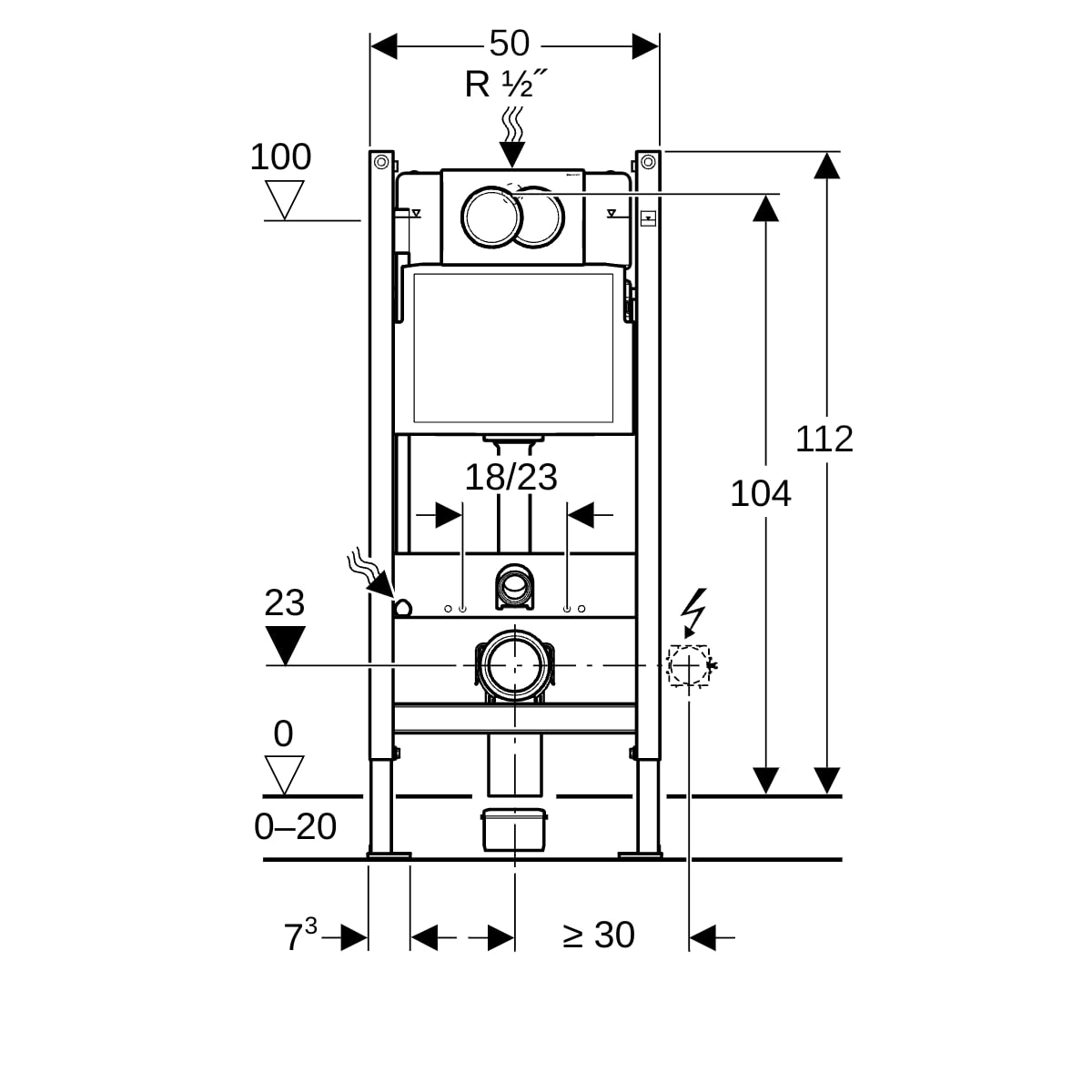 Caractéristiques du Geberit Delta Pack bâti-support Duofix 112cm + Plaque de commande Delta01, Blanche + Fixations murales (111.154.11.2) :