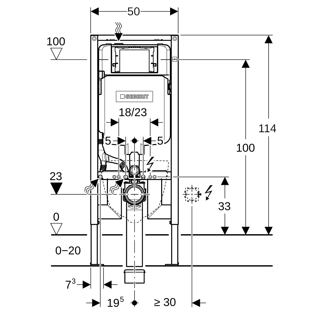 - Geberit Duofix Bâti-support extra-plat 114 cm UP720, gain de place, avec réservoir à encastrer Sigma 8 cm (111.796.00.1)