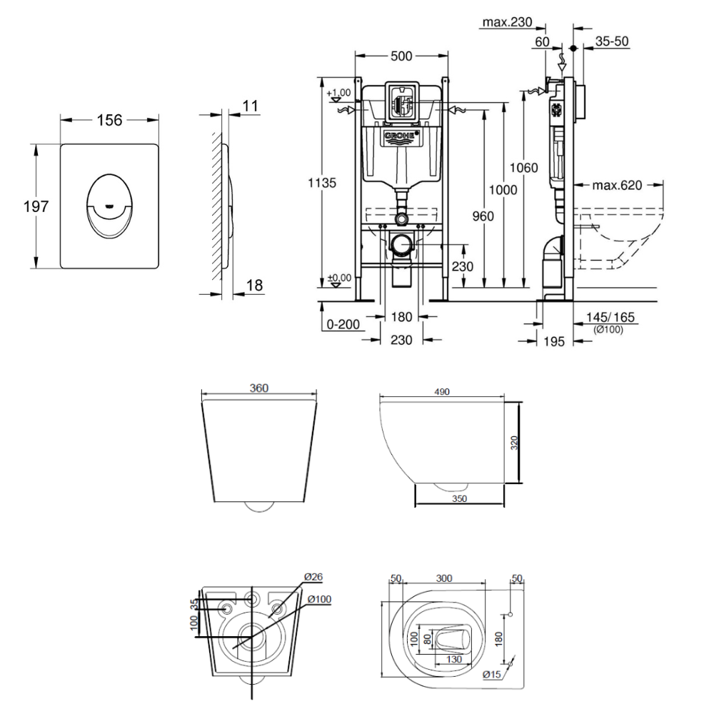 - Grohe RAPID SL Project bâti support autoportant pour WC, 1.13 M (39145000)