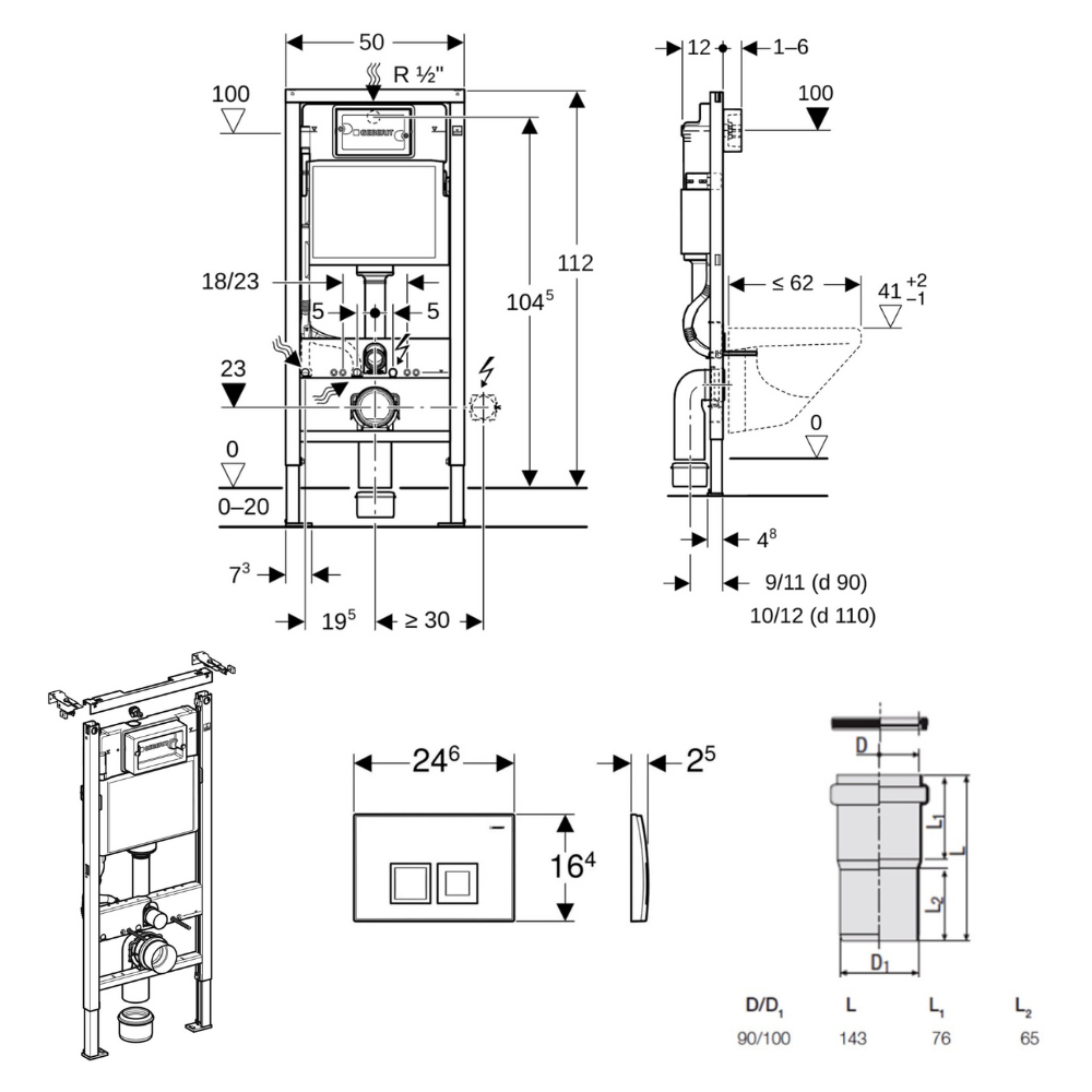 - Geberit Ensemble bâti-support Duofix UP100 + réservoir pour WC 112 cm (458.103.00.1)