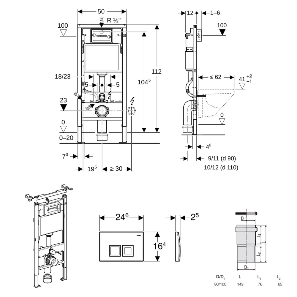 - Geberit Ensemble bâti-support Duofix UP100 + réservoir pour WC 112 cm (458.103.00.1)