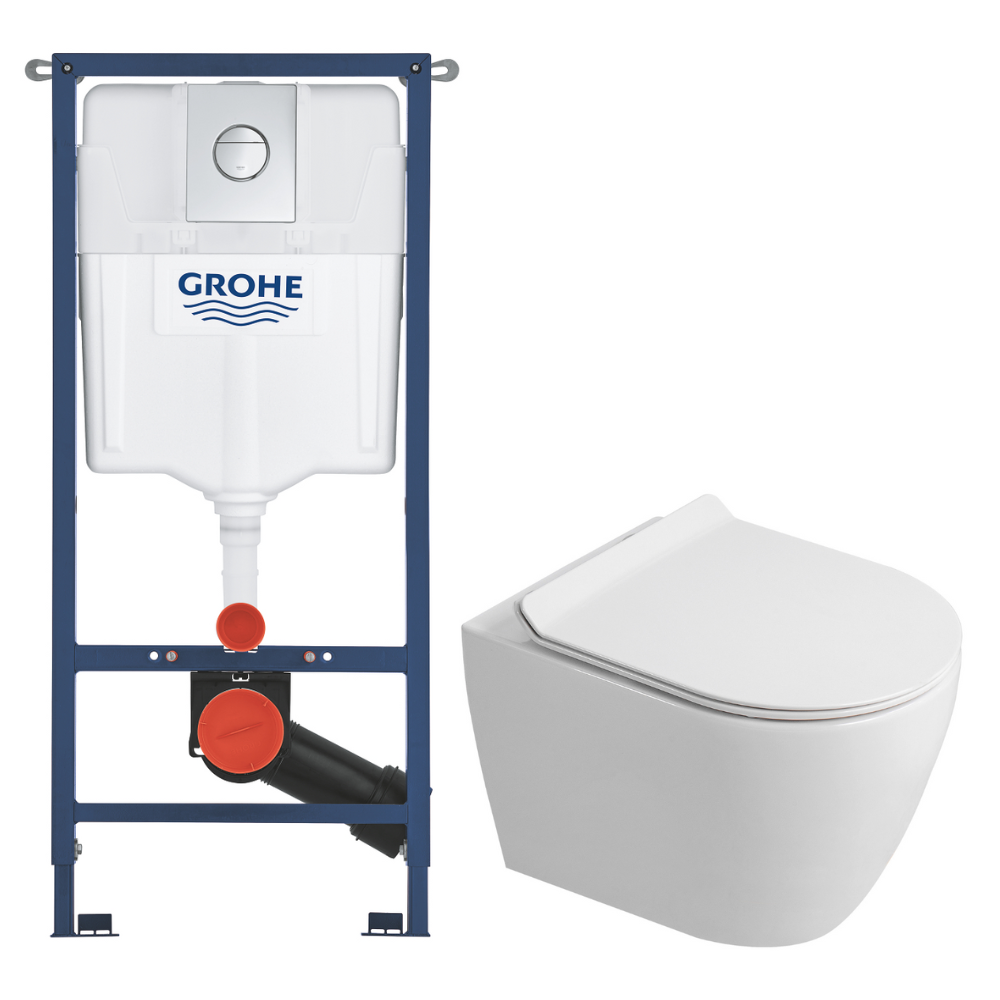 Grohe Solido pack WC kit bâti-support 4 en 1 + WC suspendu sans bride Ceramia avec abattant SoftClose + plaque chrome (GRRCEPXWT14-FR)