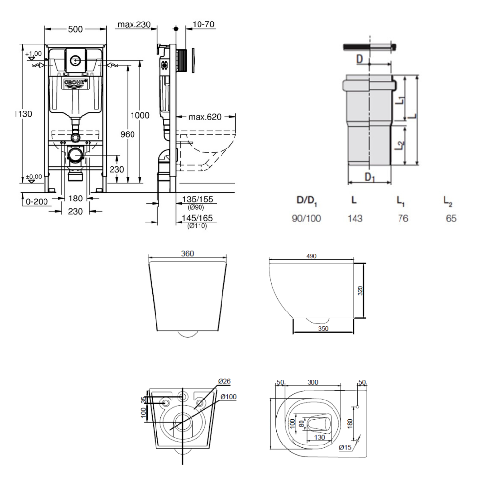 - Redi Manchon de raccordement Ø 90/100 MM pour Rapid SL ou Geberit (VS0564190)