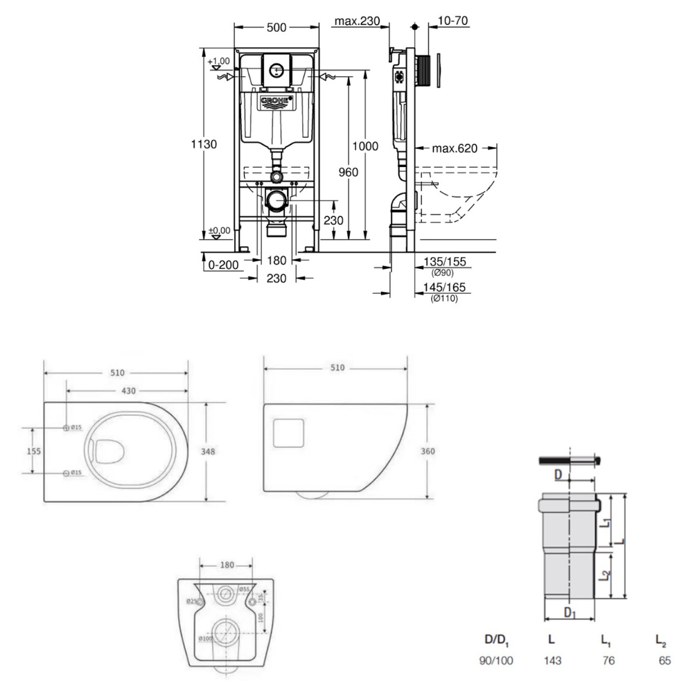 - Redi Manchon de raccordement Ø 90/100 MM pour Rapid SL ou Geberit (VS0564190)