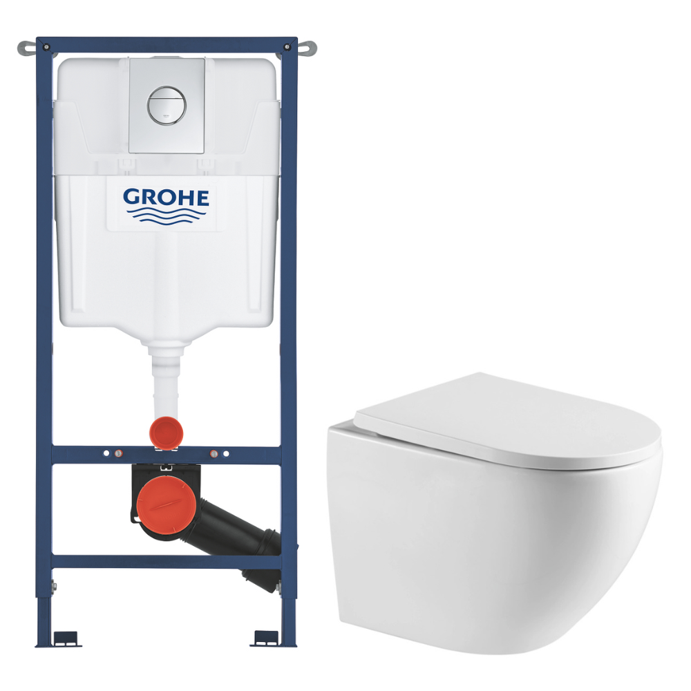 Grohe Solido pack WC bâti 4 en 1 + WC suspendu sans bride Swiss Aqua Technologies avec abattant SoftClose + plaque (GRRST67WT01-FR)