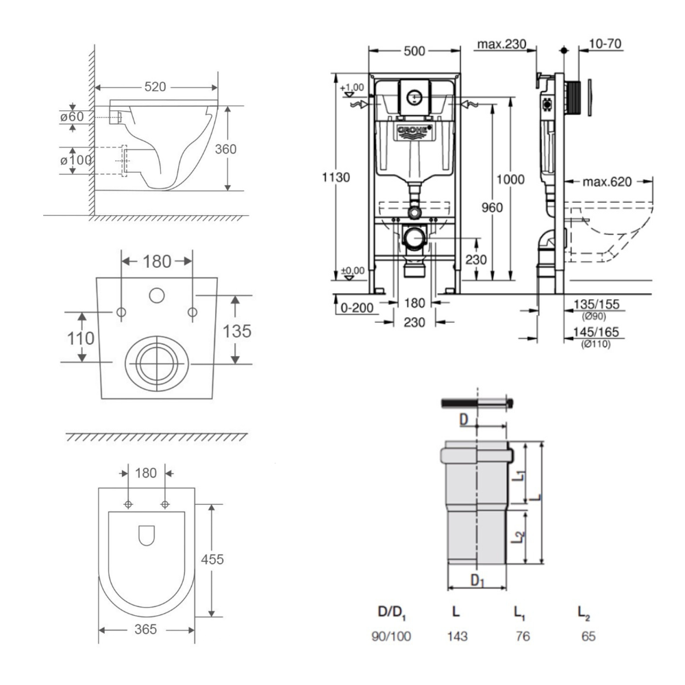 - Redi Manchon de raccordement Ø 90/100 MM pour Rapid SL ou Geberit (VS0564190)