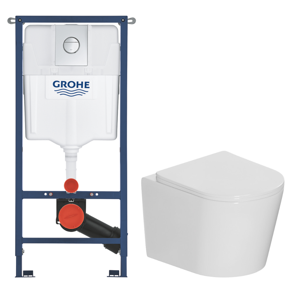 Grohe Solido pack WC bâti 4 en 1 + WC suspendu sans bride Ceramia avec abattant SoftClose + plaque (GRRST14WT01-FR)