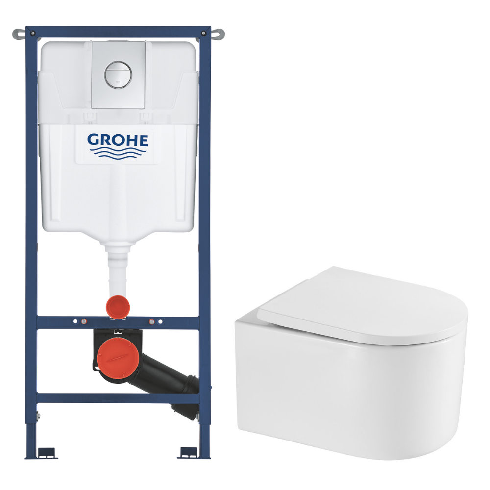 - Grohe Solido Kit WC suspendu 4-en-1, bâti-support encastré 1,13 m, chasse double, système Fresh + plaque chrome (G39978000)