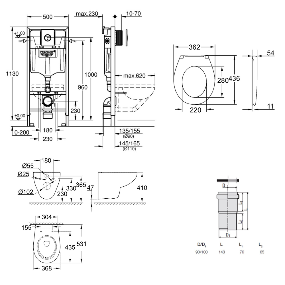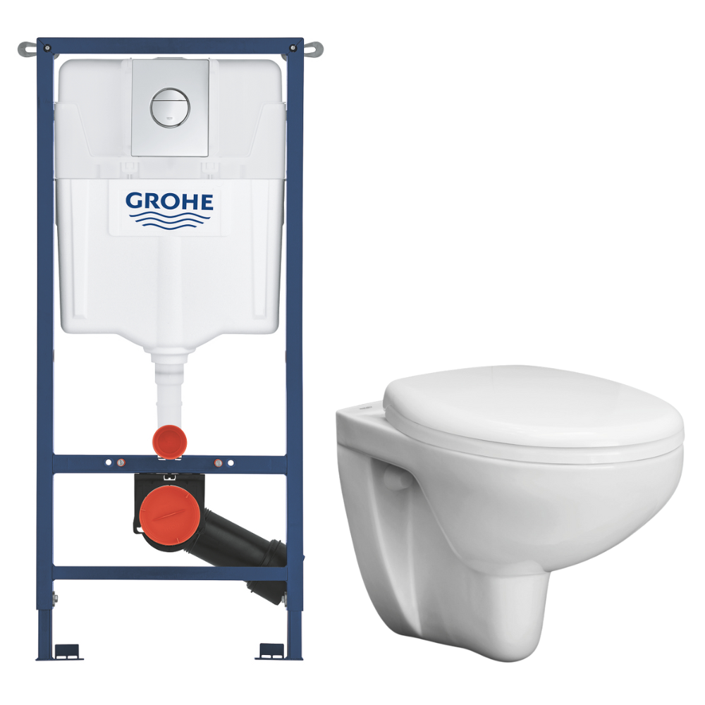 - Grohe Solido Kit WC suspendu 4-en-1, bâti-support encastré 1,13 m, chasse double, système Fresh + plaque chrome (G39978000)