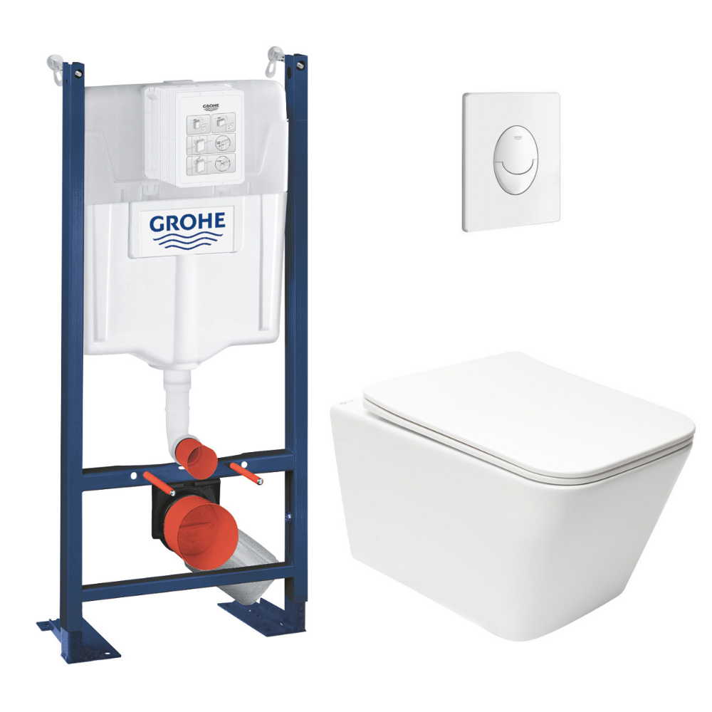 Grohe Rapid SL pack WC bâti autoportant + WC suspendu sans bride Swiss Aqua Technologies + abattant + plaque (GRRSTINFWR03MAN-FR)