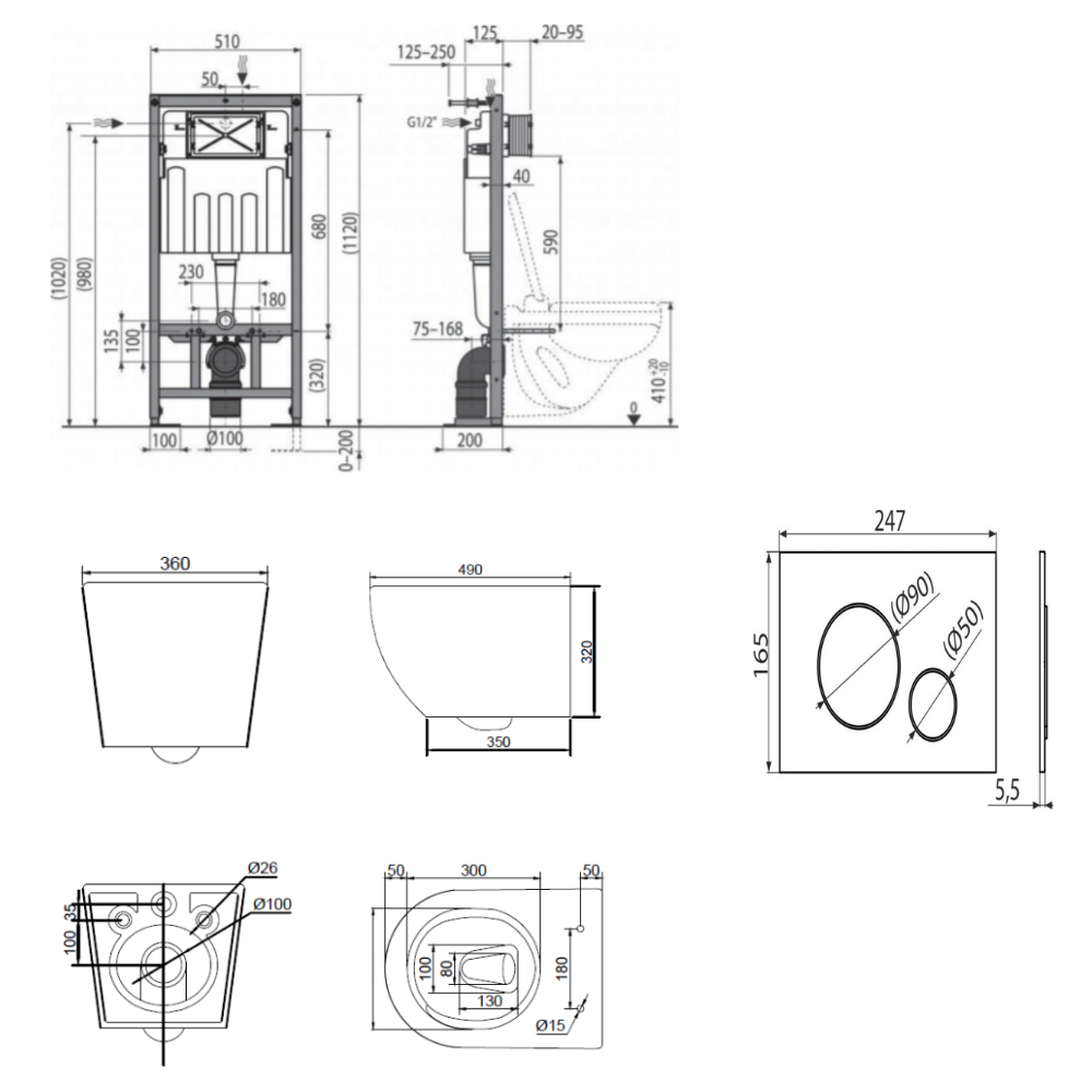 - Pour le montage de cuvettes WC suspendues avec un pas de raccordement de 180 mm ou 230 mm