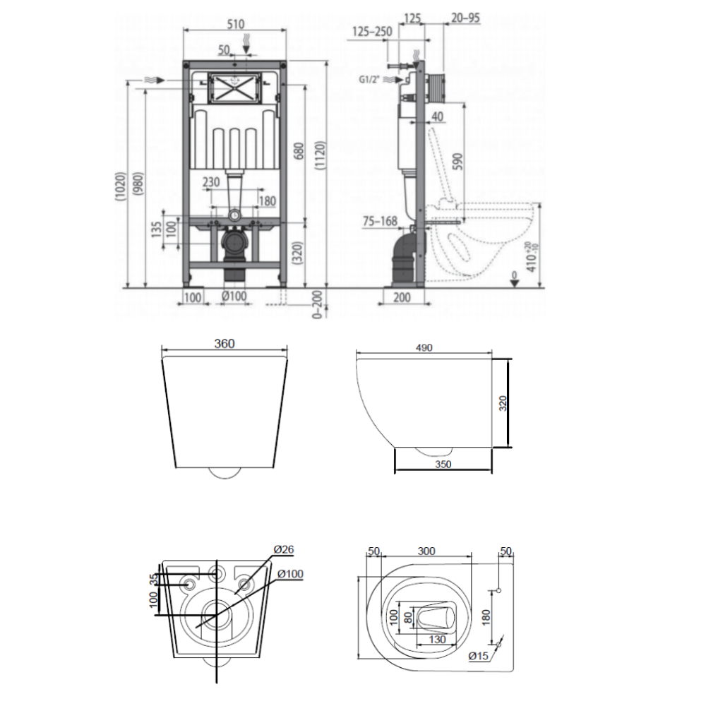 - Pour le montage de cuvettes WC suspendues avec un pas de raccordement de 180 mm ou 230 mm