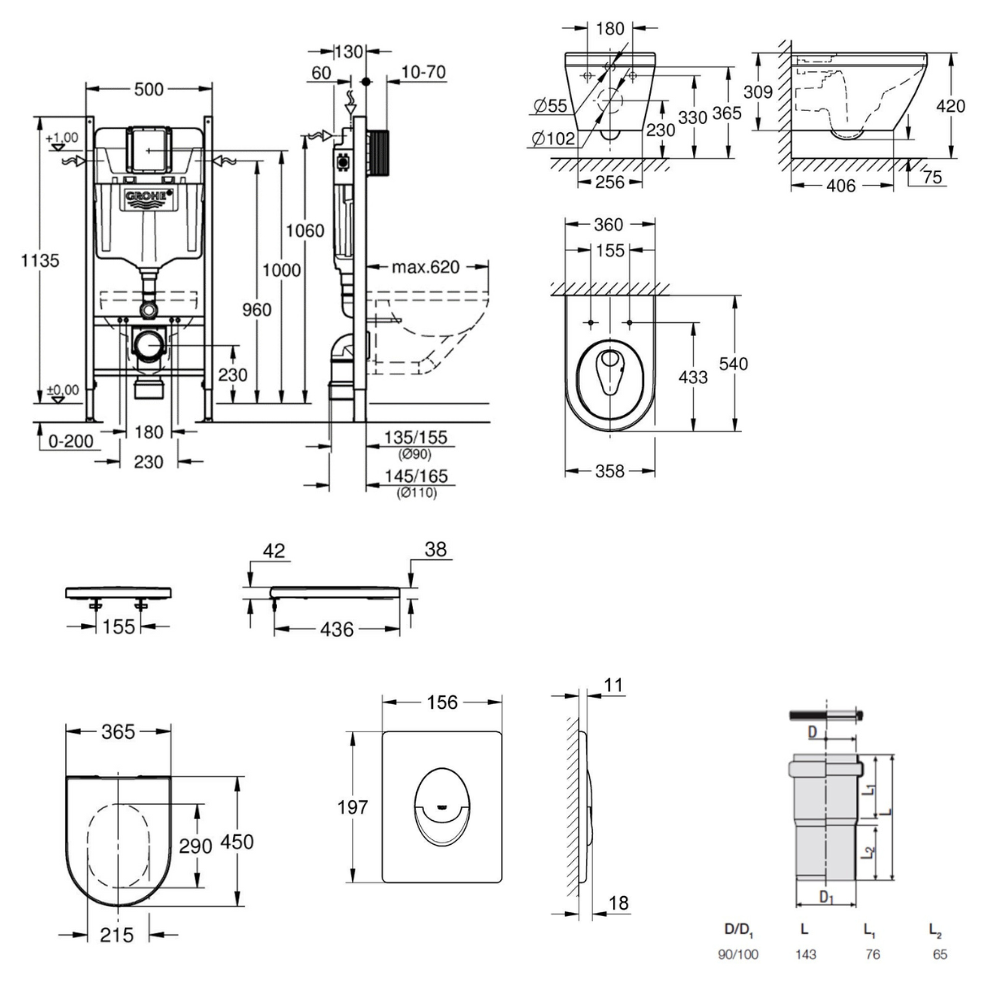 - Grohe RAPID SL PROJECT Bâti Support pour WC, 1,13M (38840000)