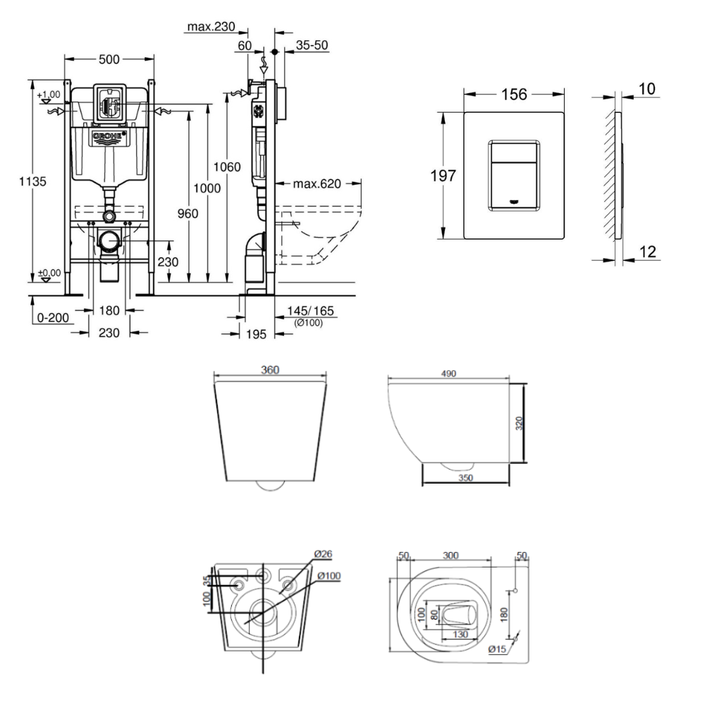 - Grohe RAPID SL Project bâti support autoportant pour WC, 1.13 M (39145000)