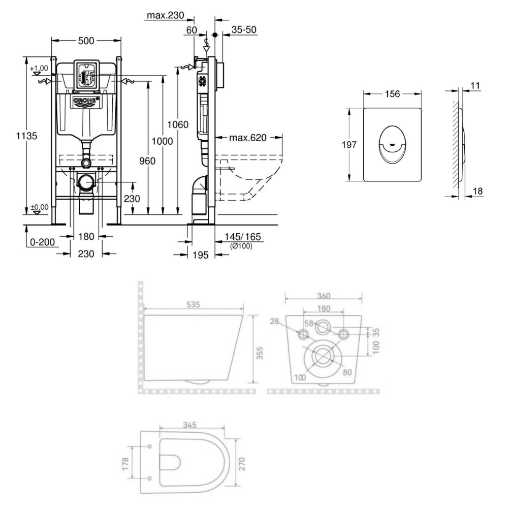 - Grohe RAPID SL Project bâti support autoportant pour WC, 1.13 M (39145000)