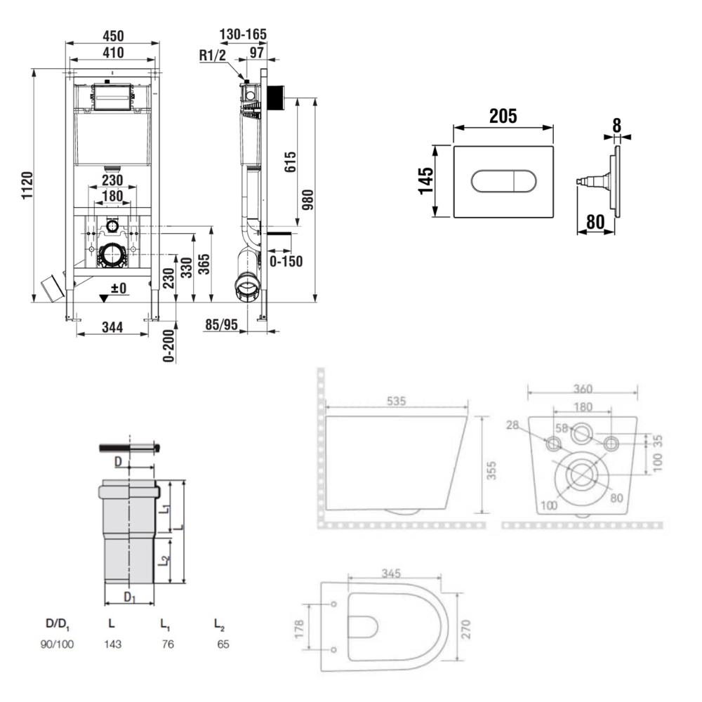 - Type de produit : ensemble WC suspendu sans bride + abattant SoftClose