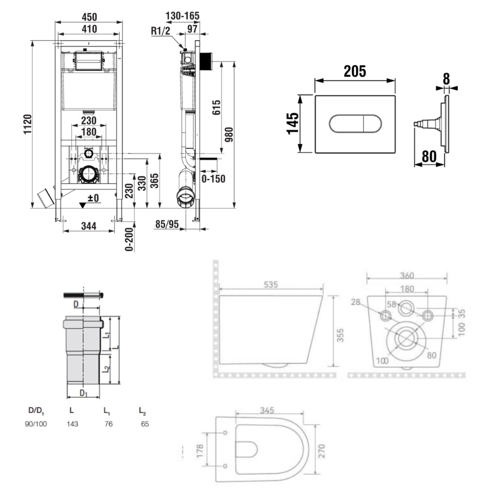 - Type de produit : ensemble WC suspendu sans bride + abattant SoftClose