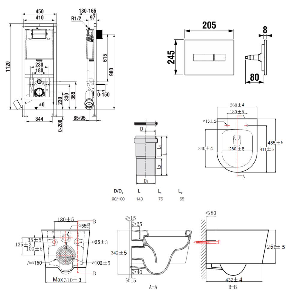 Bâti-support encastrable pour WC suspendu, installation sur cloison légère, hauteur 112 cm, chasse 2/4-6 L (A8900200Z0) :
