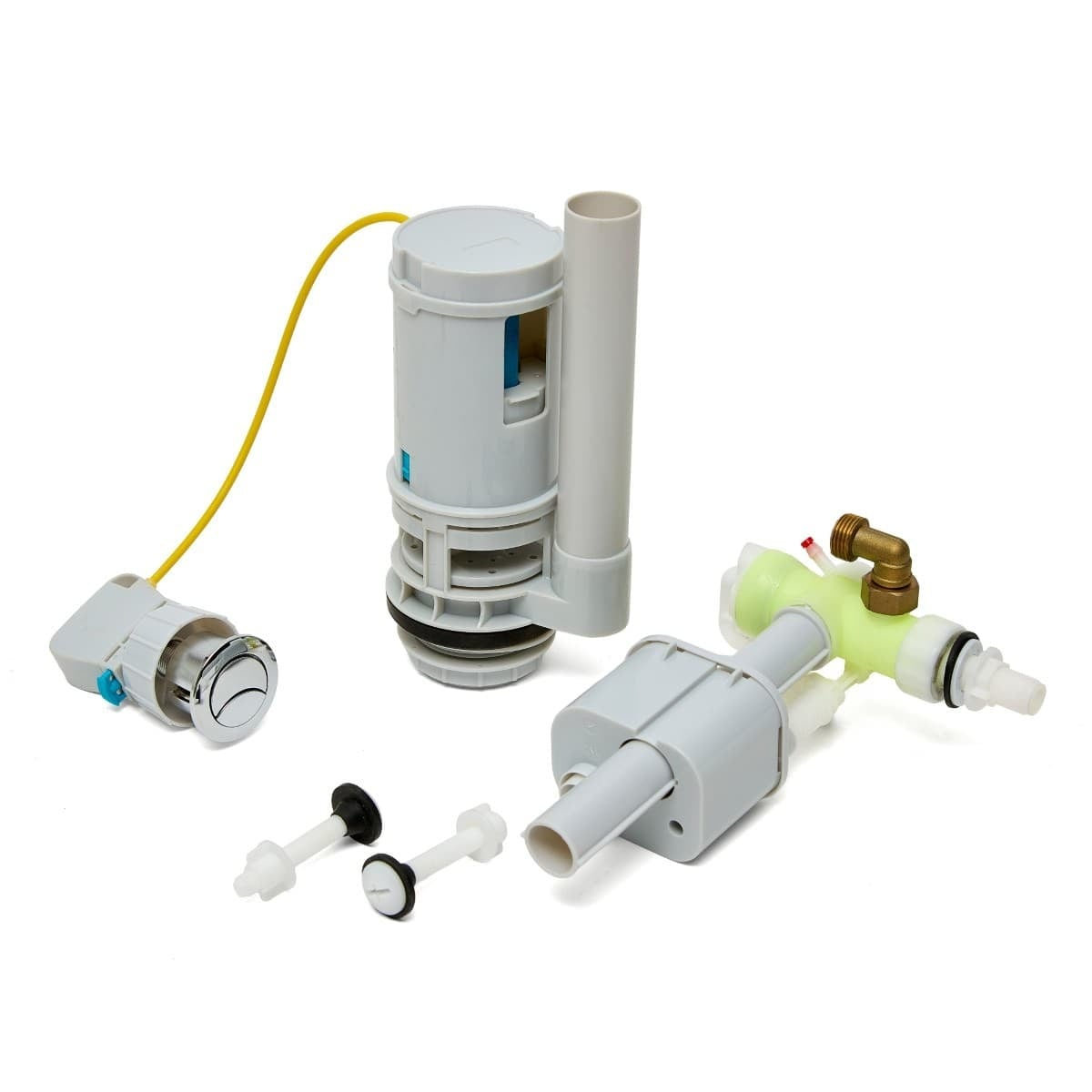 - Plaque de commande, vanne d'admission, vanne de vidange, insert insonorisant, réducteur de hauteur fournis