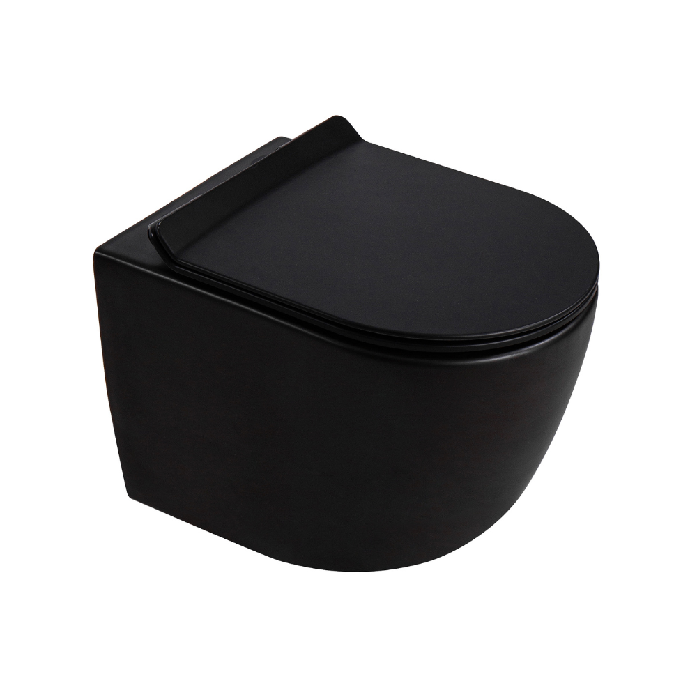 PixL WC suspendu en céramique Tornado Quiet Flush, fixations invisibles + abattant Soft-Close, Noir mat (CEPX010RTORPBKM) :