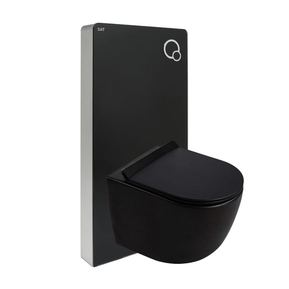 - Swiss Aqua Technologies Glass bâti-support pour WC suspendu, hauteur 100,3 cm, double chasse 3/6 L, noir (SATAMGBL)