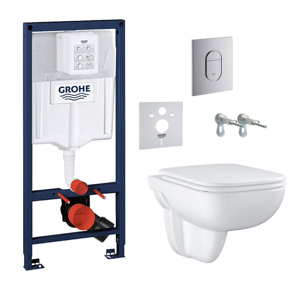 Grohe Rapid SL pack WC bâti-support + WC suspendu sans bride Grohe avec abattant SoftClose + plaque (GRGRSEWR02FR-FS)