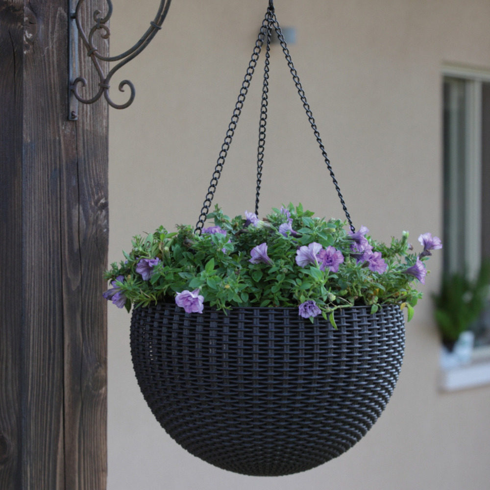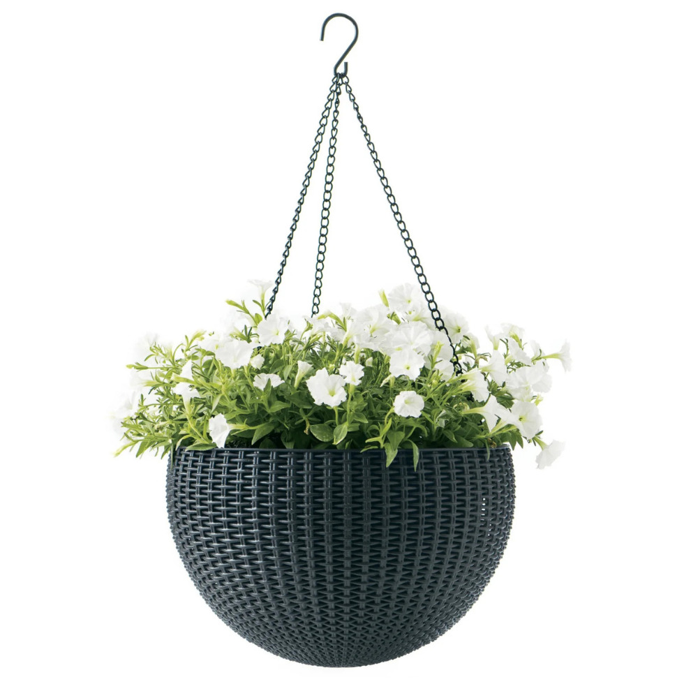 Jardinière suspendue Keter sphère en résine imitation rotin anthracite (229545)