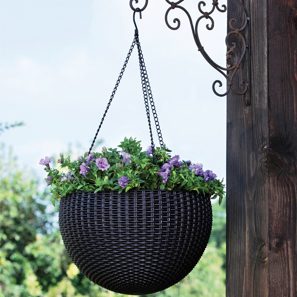 Keter Jardinière suspendue Keter sphère en résine imitation rotin anthracite, pot suspendu extérieur (229545)