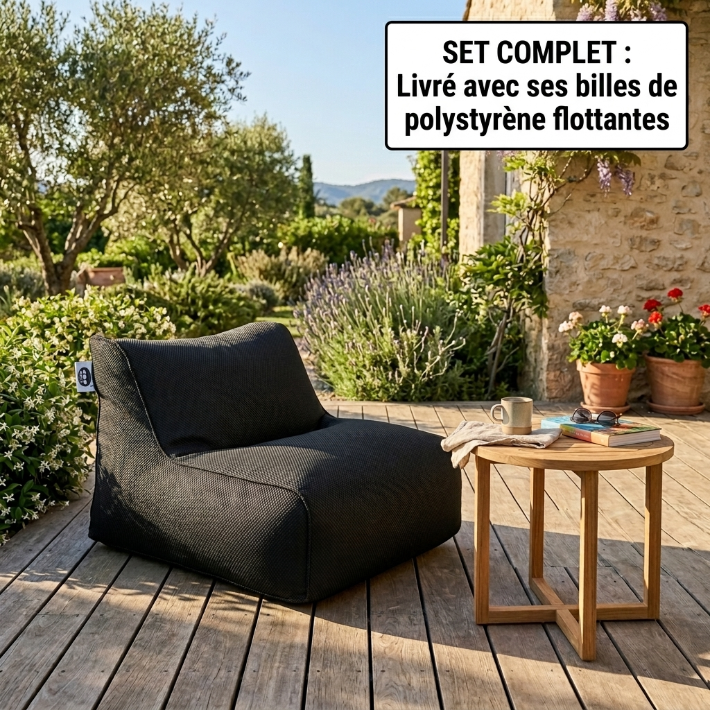 Soo Santaï Daddy Cool fauteuil XL 100 x 90 x 70cm intérieur & extérieur flottant, déhoussable et résistant aux UV, Noir (DC10090-7):