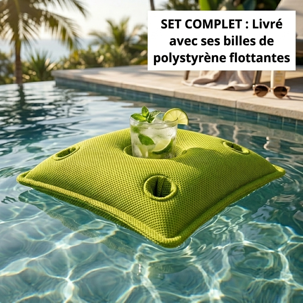 Envie de profiter du soleil sans bouger de chez vous ? Ce coussin flottant porte-verres crée facilement un espace détente au bord de la piscine, sur la terrasse ou dans le jardin.