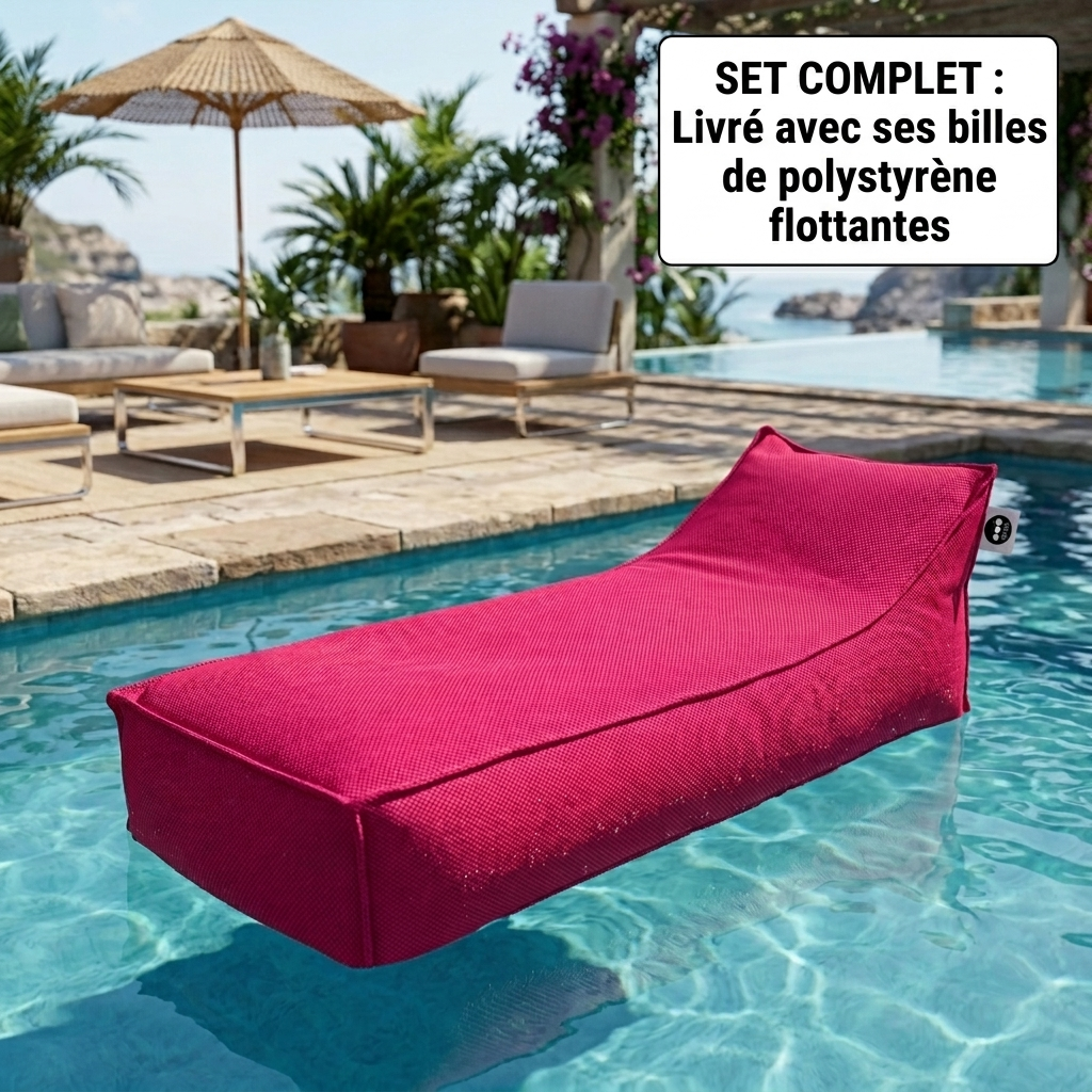 Chaise longue piscine flottante 160 × 70 × 35 cm intérieur / extérieur AVEC billes de polystyrène (à remplir) – Rose (RSF16070-3-SET)