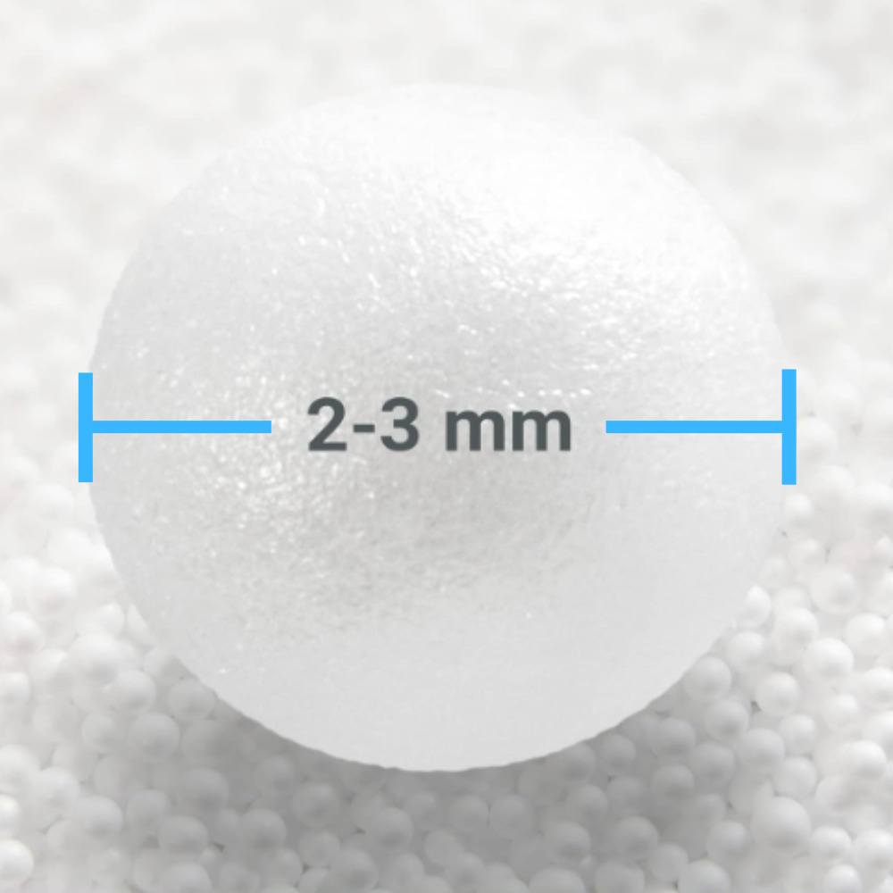 Caractéristiques des perles de Polystyrène 150L, Perle BS pour Remplissage de Pouf, Coussin, Peluche, non hydrophile et anti-feu (PERLEIGNI150):