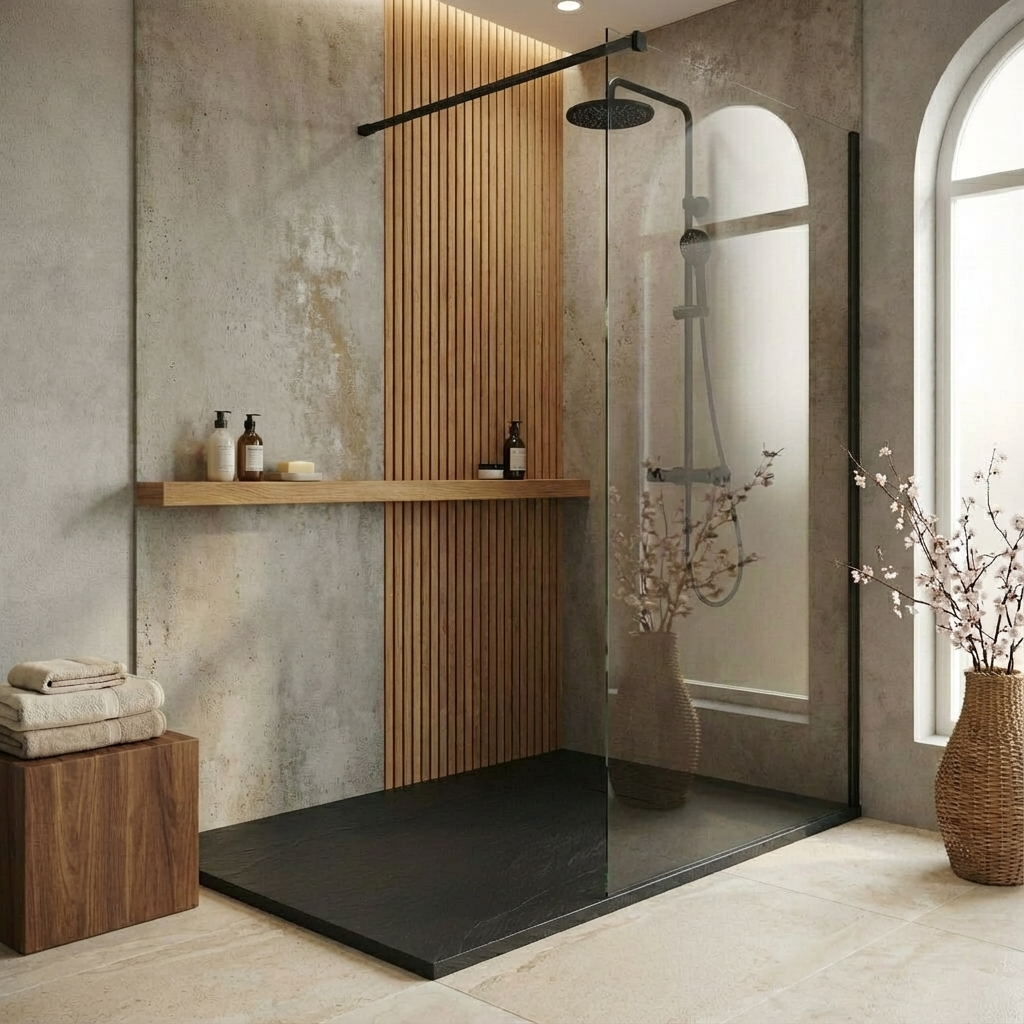 Ceramia PixL 120x80 cm receveur de douche rectangulaire à poser BMC avec surface effet pierre, noir (CERAPX12080B)