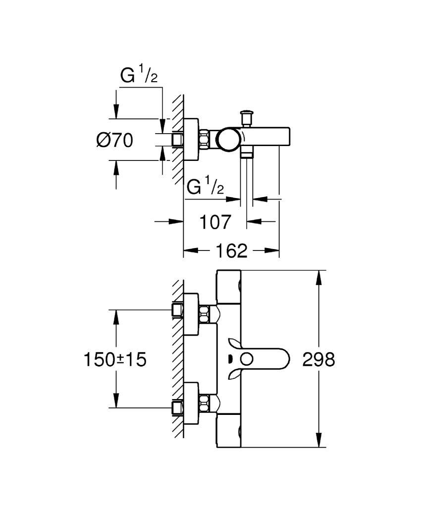 Grohe Grohtherm 1000 Cosmopolitan M Mitigeur thermostatique bain/douche 1/2" (34215002)