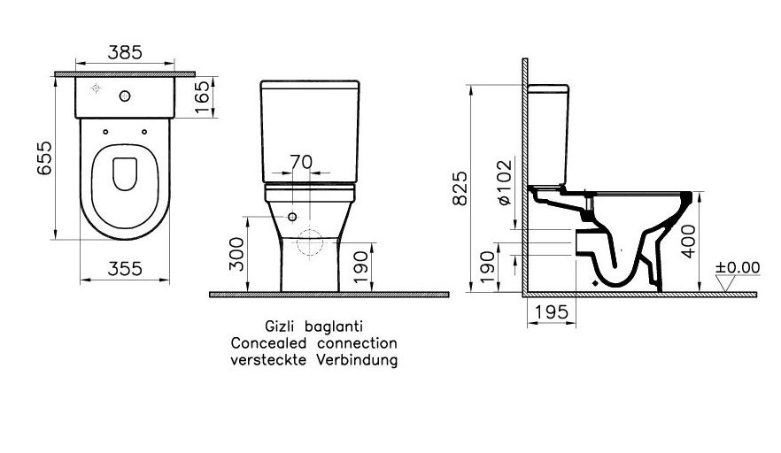 Caractéristiques du Réservoir Vitra S50, remplissage par le bas, Blanc (5422B003-5036) :