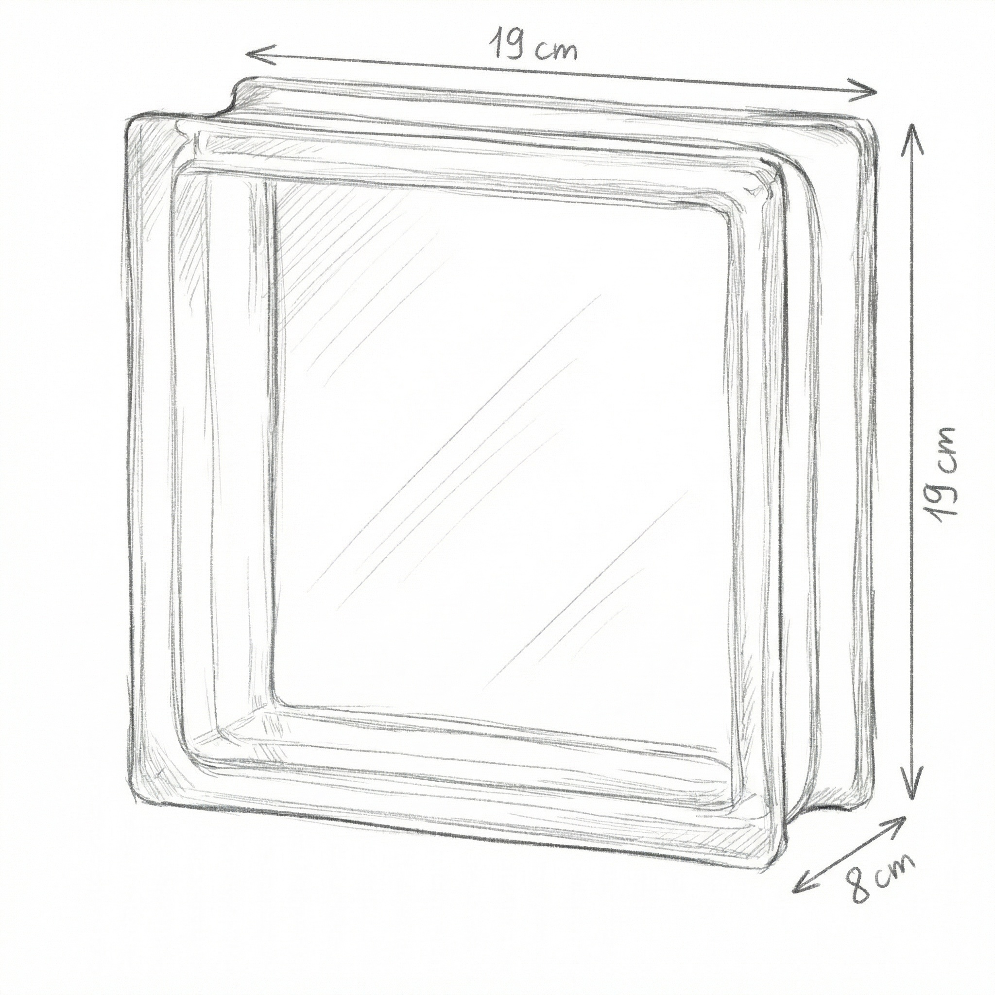 Caractéristiques de la brique de verre 19x19x8 cm, verre transparent brillant (CL1908C):