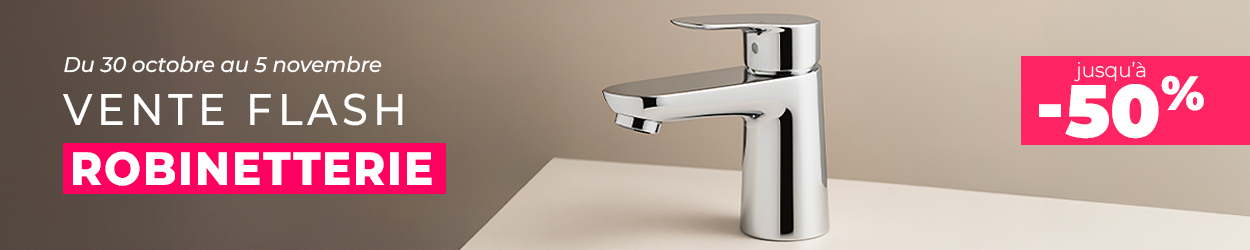 Profitez de notre vente flash exceptionnelle sur la robinetterie et bénéficiez de remises jusqu’à -50 % sur une large sélection de mitigeurs, mélangeurs et accessoires.