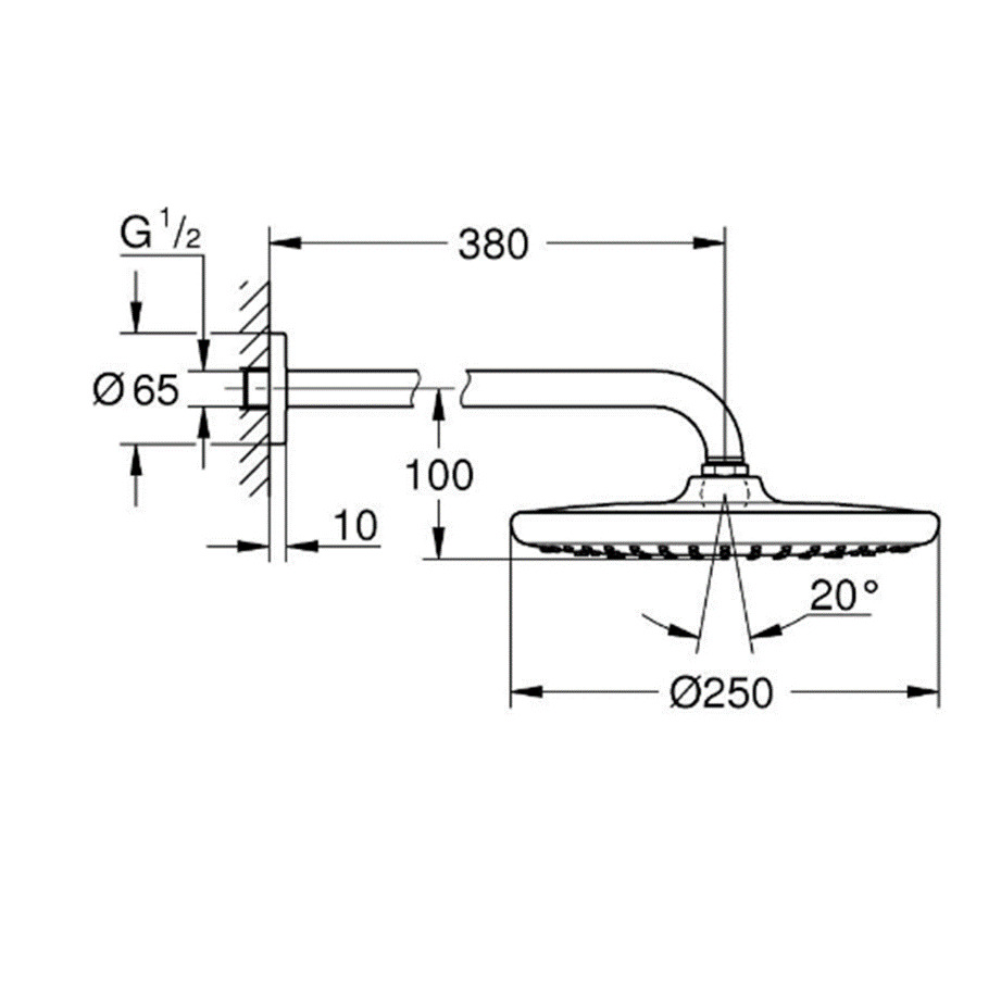 - Dimensions: Longueur du bras de douche de 380 mm.