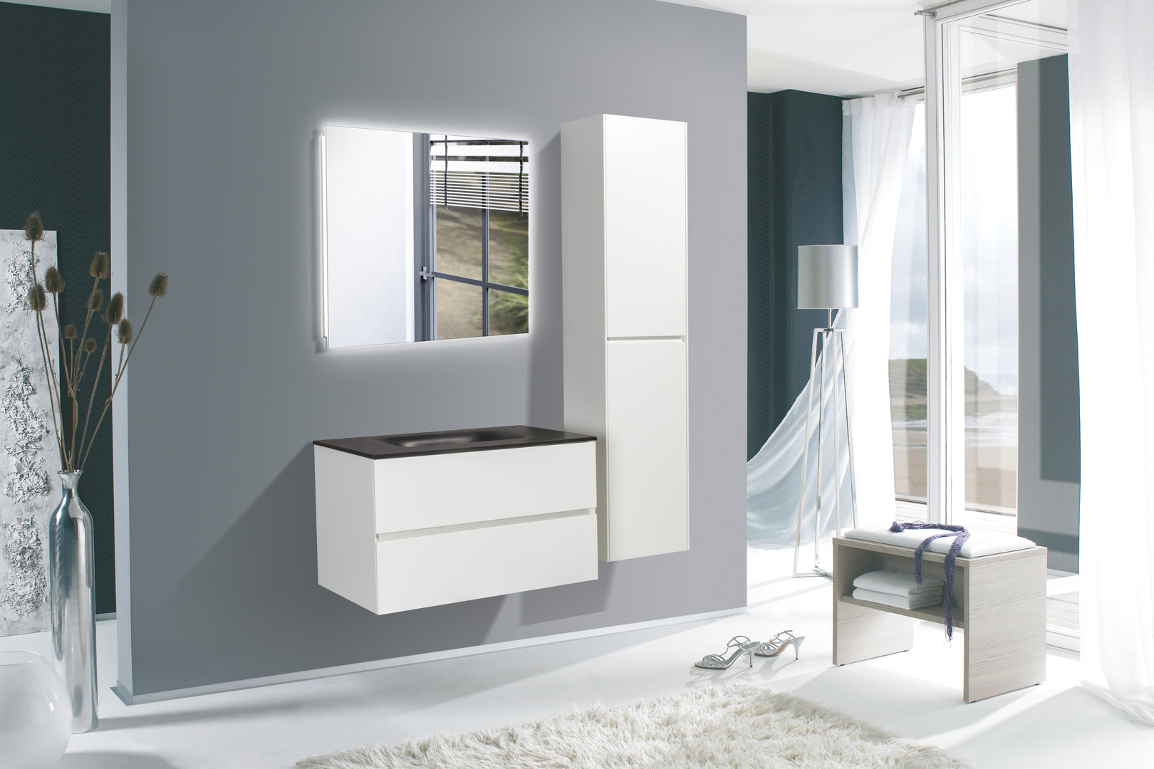 Caractéristiques du Set Meuble 66cm suspendu blanc mat avec 2 tiroirs à fermeture lente + Vasque marbre coulé noir + Armoire, Naturel Verona (Verona66NBB) :