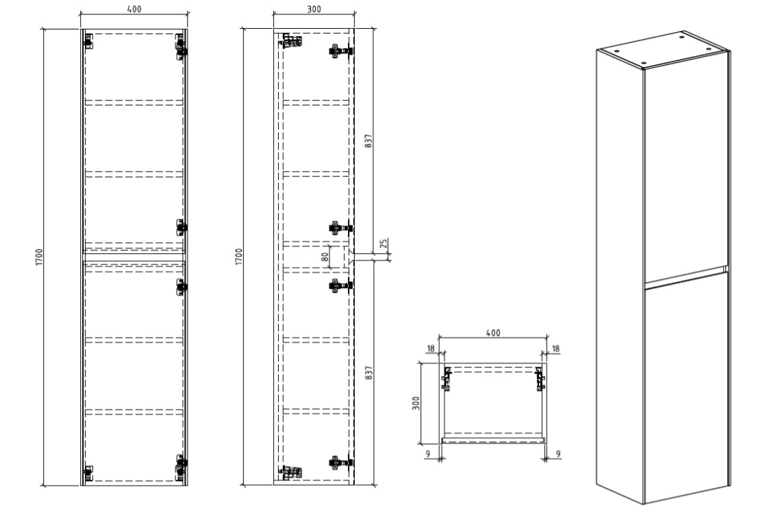 - Naturel Verona Armoire haute blanc avec deux portes, 40x30x170cm