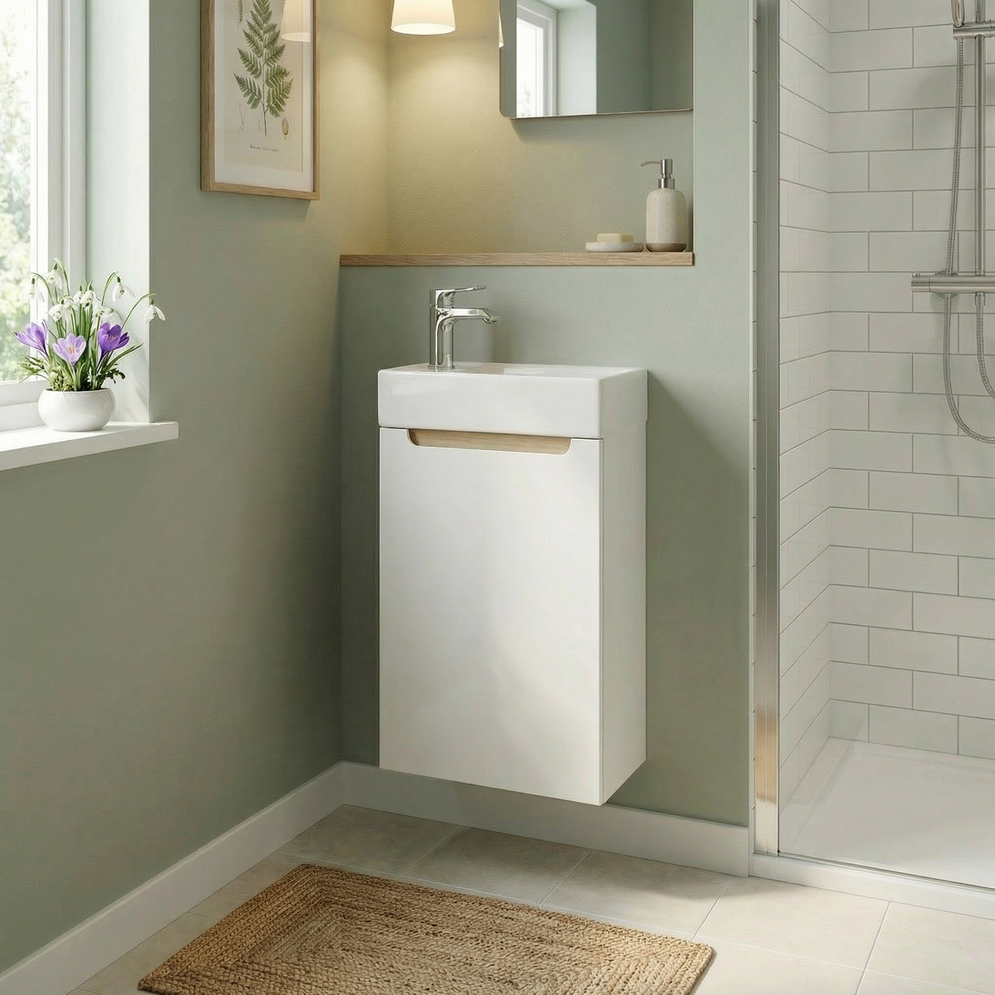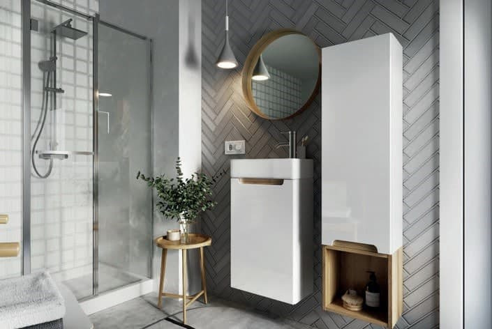 Le meuble salle de bain suspendu STILLA, dimensions 39 x 60 x 22 cm, est idéal pour aménager une petite salle de bain ou un WC avec un maximum de gain de place.