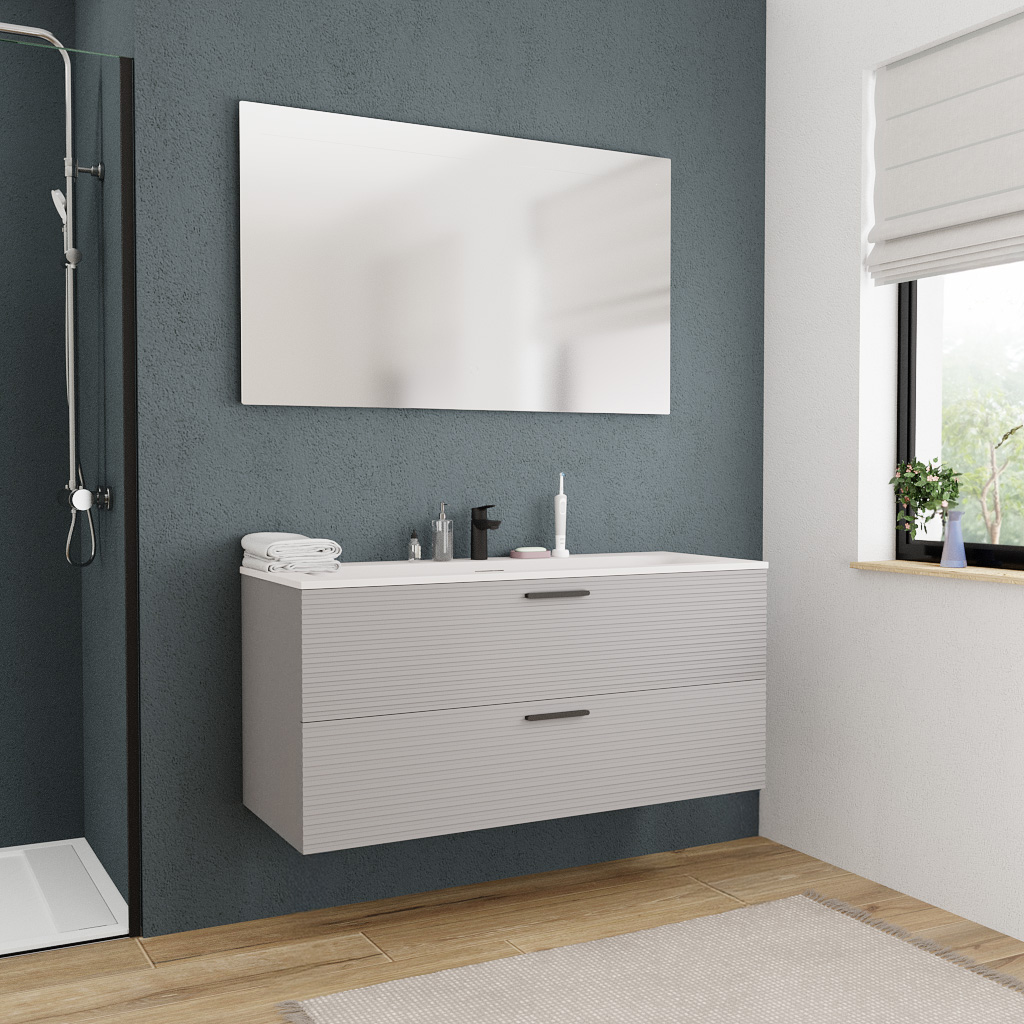 Nom du produit : Meuble de salle de bain + Vasque à encastrer Ceramia Gris Perle – 120 cm