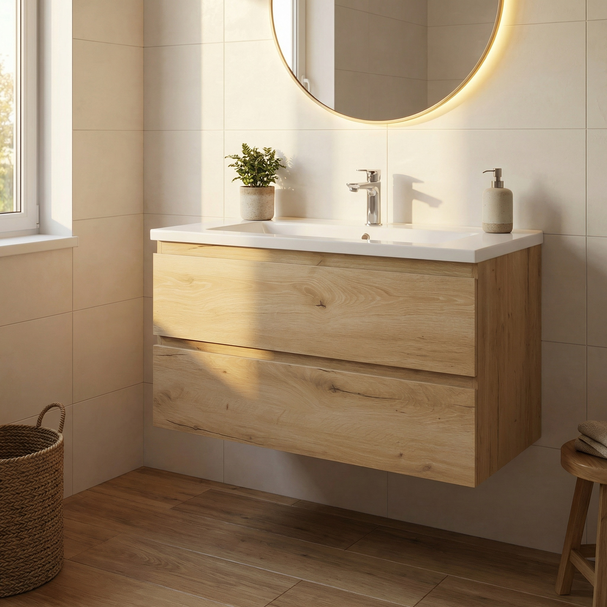 Ensemble meuble de salle de bain avec lavabo SAT B-Way – 100 cm, décor chêne mat