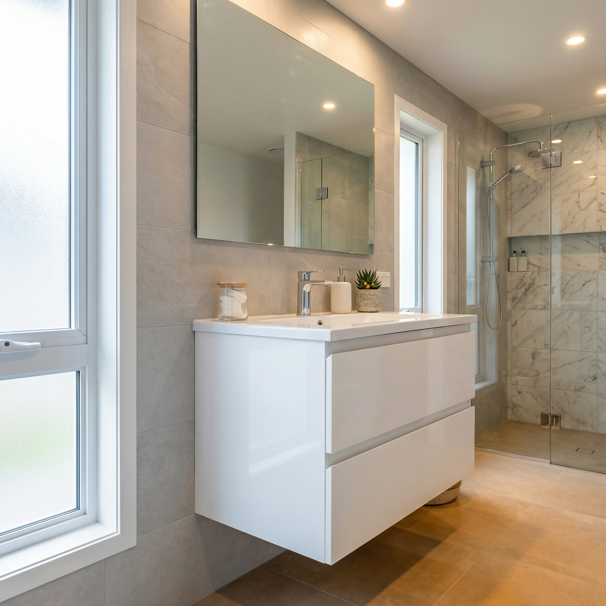 - Matière du lavabo : marbre coulé